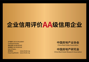 被中国房地产业协会及中国房地产研究会授予“企业信用评价AA级信用企业”