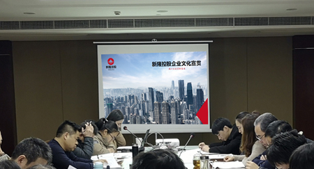 12月29日下午,新隆控股在公司总部会议室召开了企业文化宣贯会。新隆控股本部全体员工,以及下属子公司“宁波新泽商业管理公司”、“余姚新梁房地产开发有限公司”、“连云港市珠禄房地产开发有限公司”、“无锡海天新隆置业有限公司”全部员工参加了此次宣贯会。