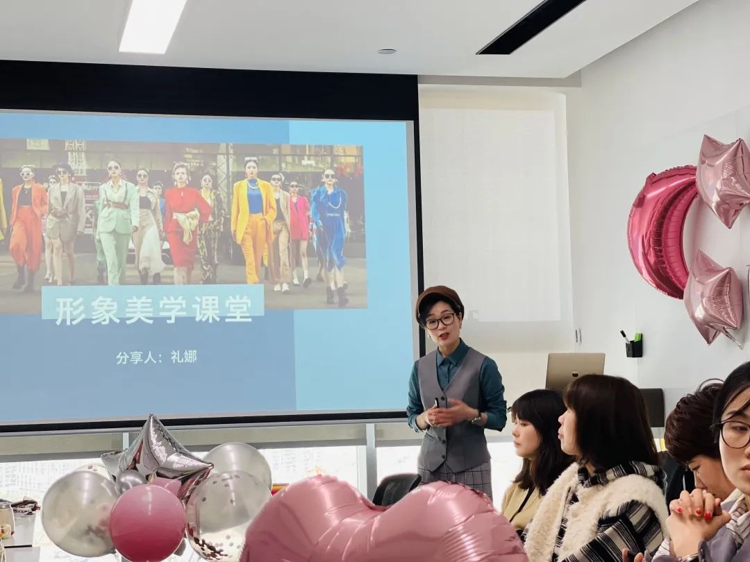 集团总部特别邀请专业的形象管理老师,来为大家分享形象美学知识。从形象管理之于个人心情、工作效率的提升,到根据自身的特质找到与之匹配的服饰搭配等,礼仪老师用通俗易懂、声情并茂的分享,让所有在场的女性同事都获益匪浅。