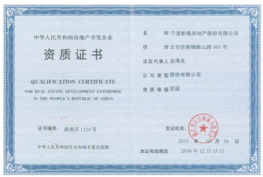 经浙江省住房和城乡建设厅审核合格并公示通过,2013年12月16日,公司房地产开发企业二级资质顺利延续,有效期至2016年12月15日。公司于2007年首次核准获得房地产开发企业二级资质,并于2010年顺利延续。此次二级开发资质的顺利延续,不仅是对公司过去三年开发业绩的肯定,同时也有利于公司今后新项目的顺利开展,提升公司综合竞争力。