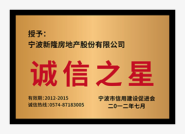 荣获2012-2015年度诚信之星