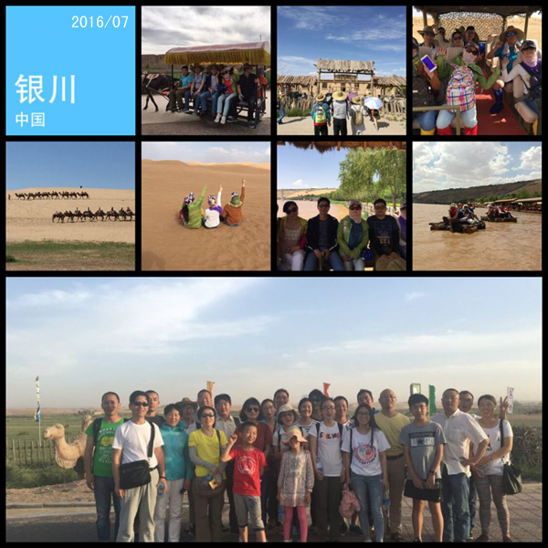 为增进员工交流,激发工作热情,6月底,7月初,公司分两批组织员工集体赴银川一地双飞五日游,分别游览了沙湖风景区、水洞沟古人类遗址、黄河横城景区、沙坡头风景区、通湖草原、贺兰山岩画、华夏西部影视城等多个著名景点。